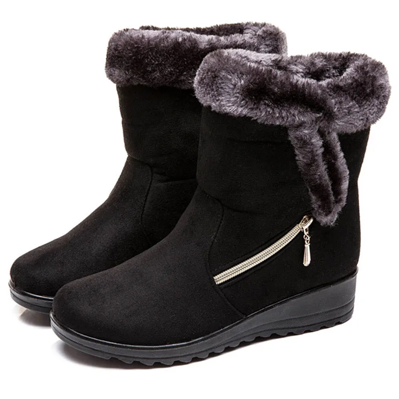 Women Boots Winter Plush Inside Snow Boots Suede Low Heels Ankle Boots For Female Winter Shoes